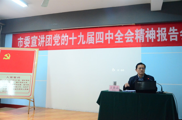 導(dǎo)讀:11月30日,市委宣講團成員,市生態(tài)環(huán)境局黨組成員、副局長王景志來到公司,為黨員代表和骨干管理者代表宣講了黨的十九屆四中全會精神。