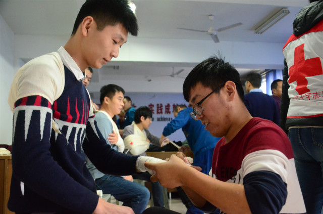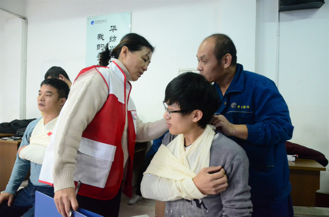參加培訓(xùn)的安全員通過認(rèn)真學(xué)習(xí)和按照要求進行實際操作演練,在學(xué)習(xí)心肺復(fù)蘇的操作以及AED的使用,創(chuàng)傷救護止血、包扎、固定、搬運等四大技術(shù)的理論與實際操作基礎(chǔ)上,還認(rèn)真聆聽了中國紅十字會的發(fā)展歷程以及“三救三獻”的工作職責(zé)。