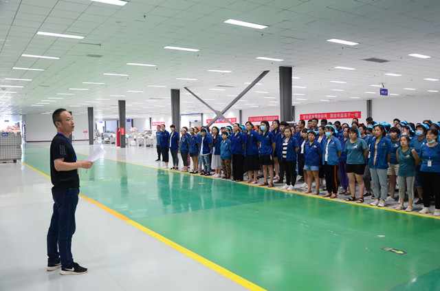 導讀:9月9日,公司家紡成品車間在生產現場召開全體員工大會,對八月份勞動競賽情況進行了全面總結,車間主任董魯波主持會議并做競賽點評。