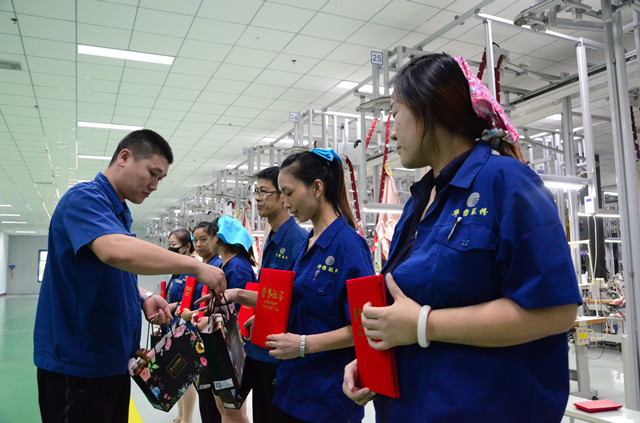 在個人表現方面,8月份綜合成績突出的6名優秀員工在現場受到表彰獎勵。他(她)們是:縫制工段劉曉霞、宋洪梅,絎繡工段孫盼盼,裁床工段宋樂樂,后整工段劉蕾蕾、雷海燕。董魯波鼓勵家紡車間全體員工以受獎優秀員工為趕超目標,立足本職崗位創先爭優;勉勵受到表彰獎勵的優秀員工繼續保持干勁和榮譽,在后續工作中做得更好。