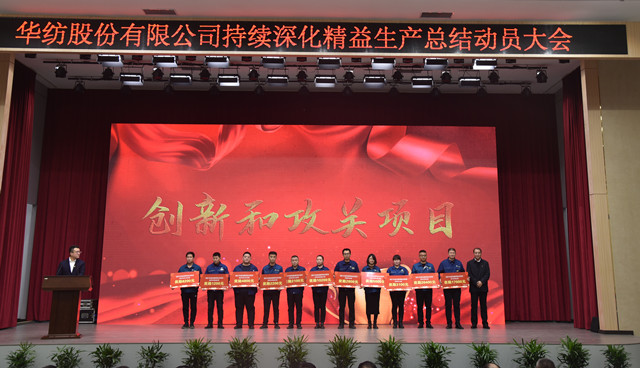 會上,公司董事長盛守祥為2021年度優秀團隊、勞動模范頒獎;總經理閆英山為華紡工匠、十佳精益輪班(工段)長、十佳技術能手、十佳操作能手、優秀員工代表頒獎;質量總監李風明為優秀CQI項目、創新攻關項目、優秀精益機組代表頒獎。公司對在過去一年的“我與效益提升”工作中表現良好的原料運營公司等10個部門給予了通報表揚;“退城進園”暨“智能綠色工廠建設項目”整體建設與搬遷,成為“2021-華紡年度感動”內容。