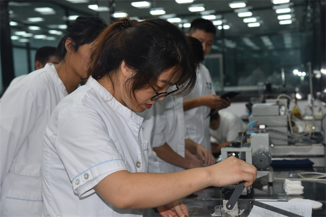 檢測中心實驗室全體三班專業人員參加本次活動,比武內容為色牢度實操。比武規則要求參賽者在規定的時間內完成色牢度試驗,以考察他們的專業操作效率與水平。比武現場秩序井然,各參賽選手嚴格按照“科學、嚴謹、求實”的原則投入比武,充分展示了公司專業檢測人員的水平與能力。通過本次操作競賽比武活動,既為專業檢測人員搭建了學習交流平臺,也增強了專業技能素養,參賽選手間相互切磋,相互交流,營造了“比、學、趕、超”的良好氛圍,為建設“質量華紡”添加了助力。
