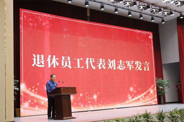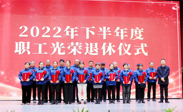 會上,公司黨委委員、人力行政總監(jiān)孫玉濤宣讀了2022年下半年度退休職工工作簡歷,盛守祥為退休員工代表頒發(fā)榮譽證書。退休員工劉志軍代表29位退休同志做表態(tài)發(fā)言。他表示,華紡陪伴和引領著我們一路向前,為我們每位員工提供了成長的平臺,退休是人生新階段的開始,會努力保持樂觀的心態(tài),繼續(xù)關注和支持華紡事業(yè)的進步與發(fā)展,并努力為公司發(fā)展、社會進步做力所能及的事情。