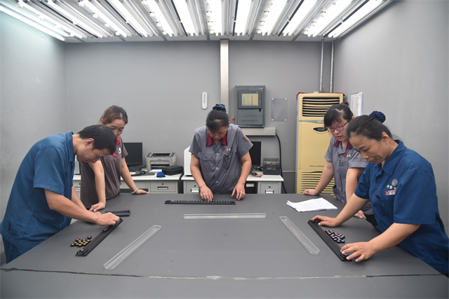 標準質量部牽頭組織各印染車間、實驗室對技術員、實驗員開展色棋評定,切實強化提升員工產品質量意識,提高顏色符合率,鼓勵廣大員工在日常生產中弘揚工匠精神,堅持質量第一,精益求精。