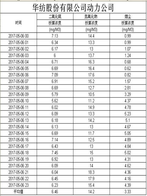 煙氣排放數據信息公開2017.5.6數據