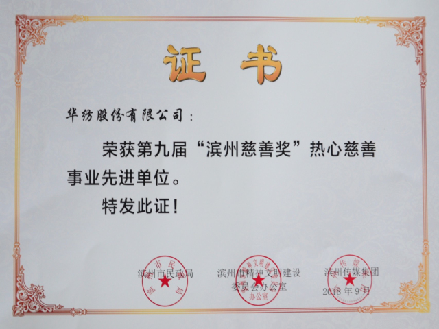 公司榮獲“熱心慈善事業先進單位”榮譽稱號